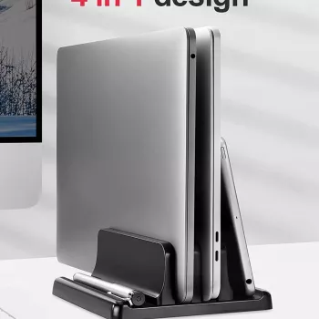 Dual-Slot Adjustable Vertical Laptop Stand for MacBook, iPad, iPhone